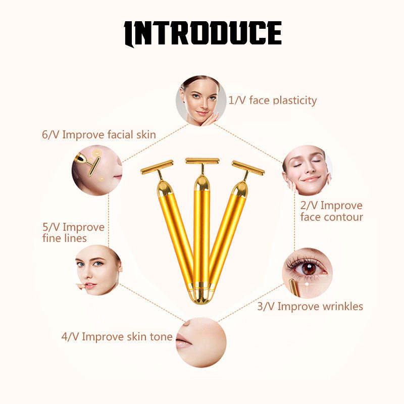 Gold Electric Beauty Stick Strong Vibration RF Facial Massager Slimming Tool Facial Tightening Tool